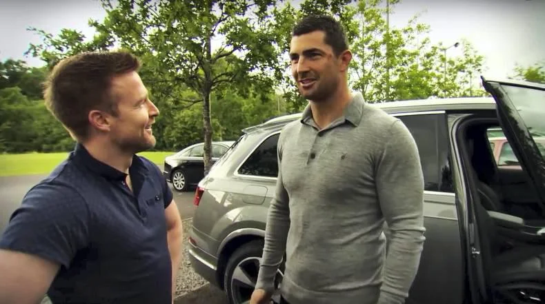 Rig the Audi Q7 with hidden cameras and get one of Ireland's top Rugby players and Audi Brand Ambassador, Rob Kearney, to take it for a test drive...with a difference. Rob was fitted with an earpiece where he was fed lines and instructions from his fellow brand ambassadors and team mates Peter O'Mahony and Robbie Henshaw, as well as presenter Aidan Power, leading to ever more bizzare actions from Rob and hilareous reactions from the poor unsuspecting Audi representative.